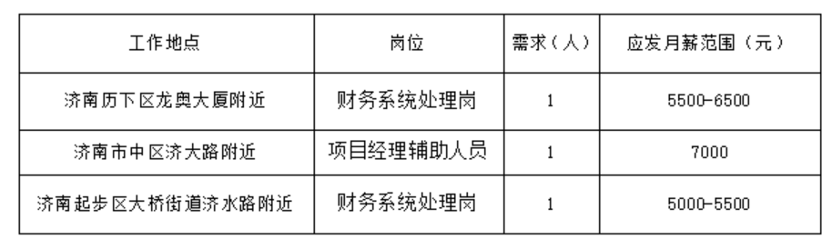 济南起步区、龙奥、市中区附近某事业单位项目经理辅助人员和财务系统处理岗招聘启事