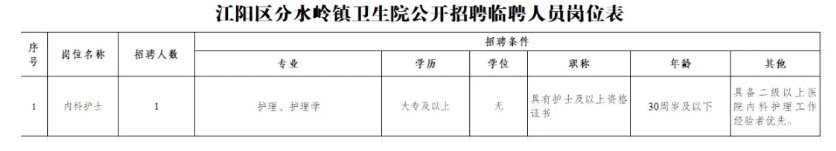 按照公开、平等、竞争、择优的原则江阳区分水岭镇卫生院拟面向社会公开招聘临聘人员1名,现将有关事项公告如下。