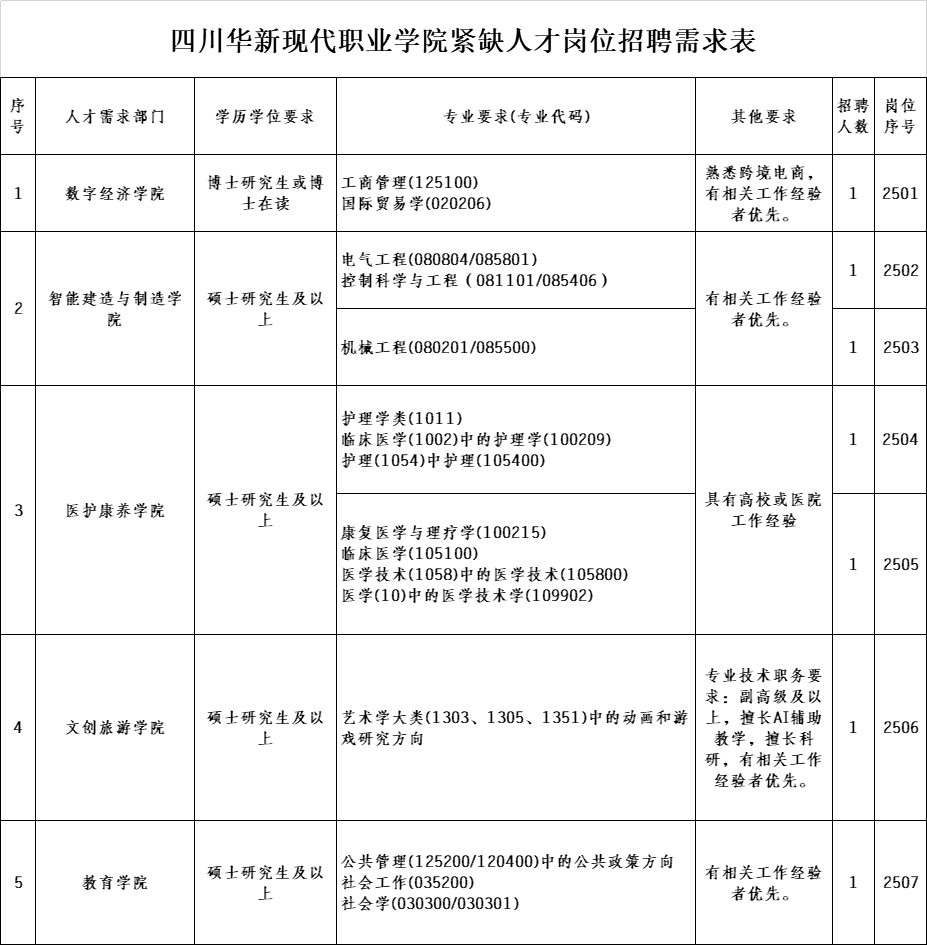 温馨提示:我院的招聘流程正规有序,从未向应聘者收取任何面试相关费用,面试通知一律采用电话通知的方式,请大家提高警惕。另,我院官方发布招聘信息为四川华新现代职业学院(www.schxmvc.com.cn)首页公告、四川华新现代职业学院微信公众号。有部分网站、公众平台等非官网渠道转载我院招聘信息,可能存在信息失真。