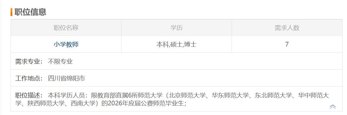 教育部部属师范大学2026届公费师范毕业生;硕士研究生及以上学历学位。