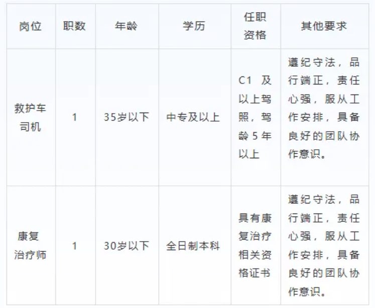 救护车司机1名