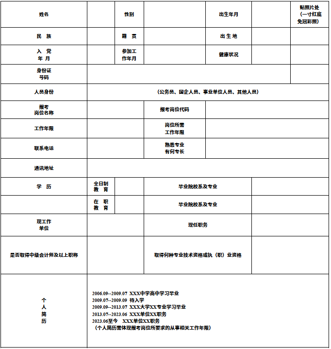 1.《达州国鑫产业发展有限责任公司专业技术人员报名信息表》、本人近期免冠彩色电子证件照。