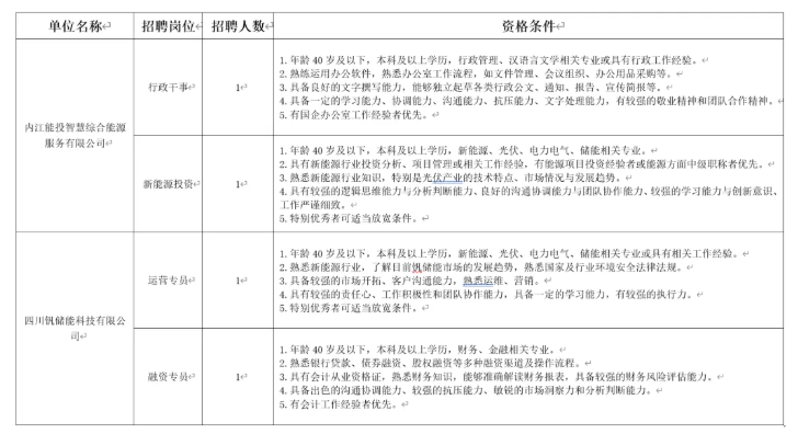四川钒储能科技有限公司是能投公司下属全资子公司,主要经营业务有储能技术服务、信息系统集成服务、电池制造、机械电气设备制造、危险废物经营、发电业务、供(配)电业务、检验检测服务等。