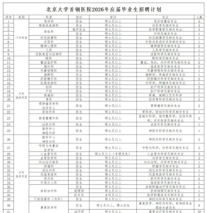 2、请登录北京大学首钢医院2026年校园招聘网申地址https://syhci.zhiye.com/campus/jobs