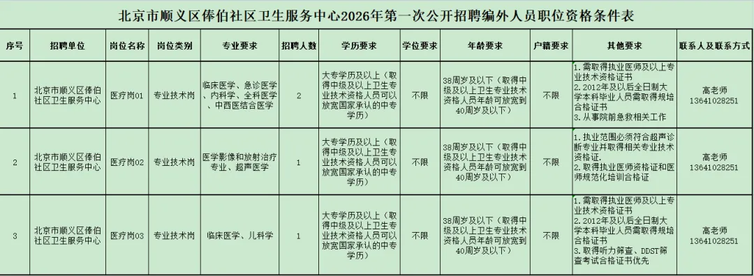 俸伯社区卫生服务中心位于顺义区南彩镇后俸伯村东,是一所集基本医疗和公共卫生服务为一体的现代化综合性乡镇卫生院。结合目前中心业务发展和人才队伍建设需要,现对外公开招聘2026年度编外人员,具体招聘细则如下: