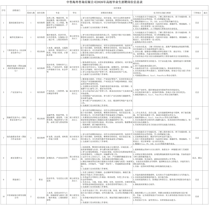 中咨海外咨询有限公司是中国国际工程咨询有限公司所属二级子公司,于1988年成立,经过30多年发展,为各级政府、企事业单位提供了万余项咨询服务,在国内咨询领域具有一定知名度和较高信誉,具备较好的发展基础。2021年入选国资委“管理标杆”企业,2022-2025年连续4年蝉联国资委“双百行动标杆”企业。