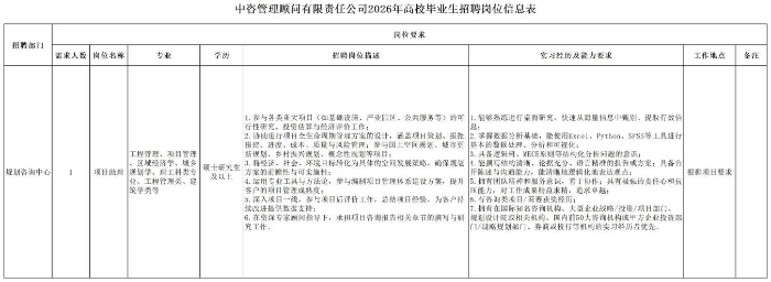 经过30余年的不懈努力,我们积累了丰富的工程管理经验,为各类工程建设项目保驾护航,“中咨管理”品牌成为行业的一面旗帜。我们崇尚简单、包容、共享的理念,秉持创造价值、贡献社会的使命和专业创造精品、价值成就客户的核心价值观,为成为全过程工程管理咨询的领先者而奋斗。优秀的你值得更好的平台,加入我们,携手共创新篇章!