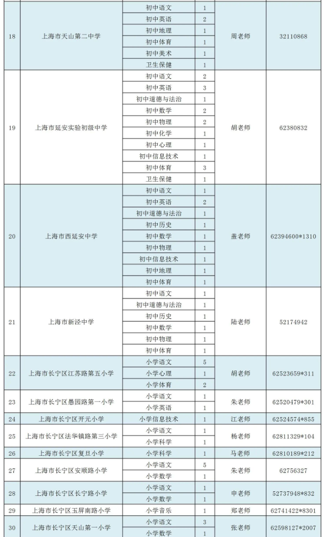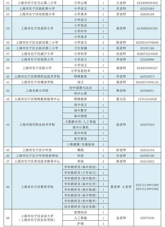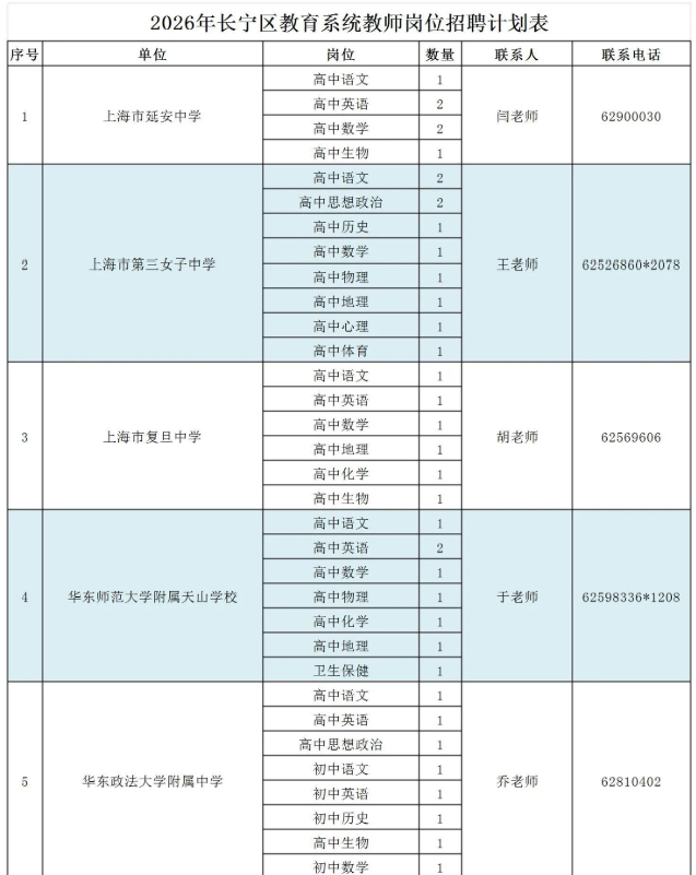 附:2026年长宁区教育系统教师岗位招聘计划表