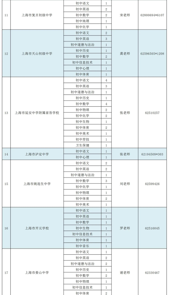 ⑥非上海生源应届毕业生一般为研究生及以上学历,紧缺学科可放宽至本科学历;