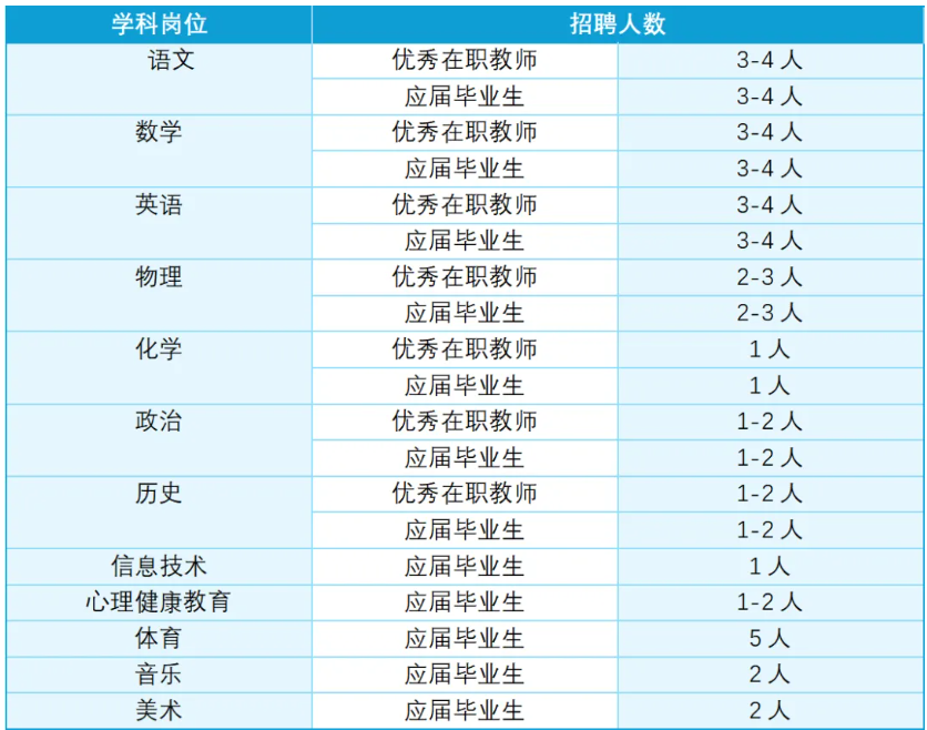 6.学科教师需按规定取得应聘资格条件要求的毕业证、学位证和教师资格证(或中小学教师资格考试合格证明)。