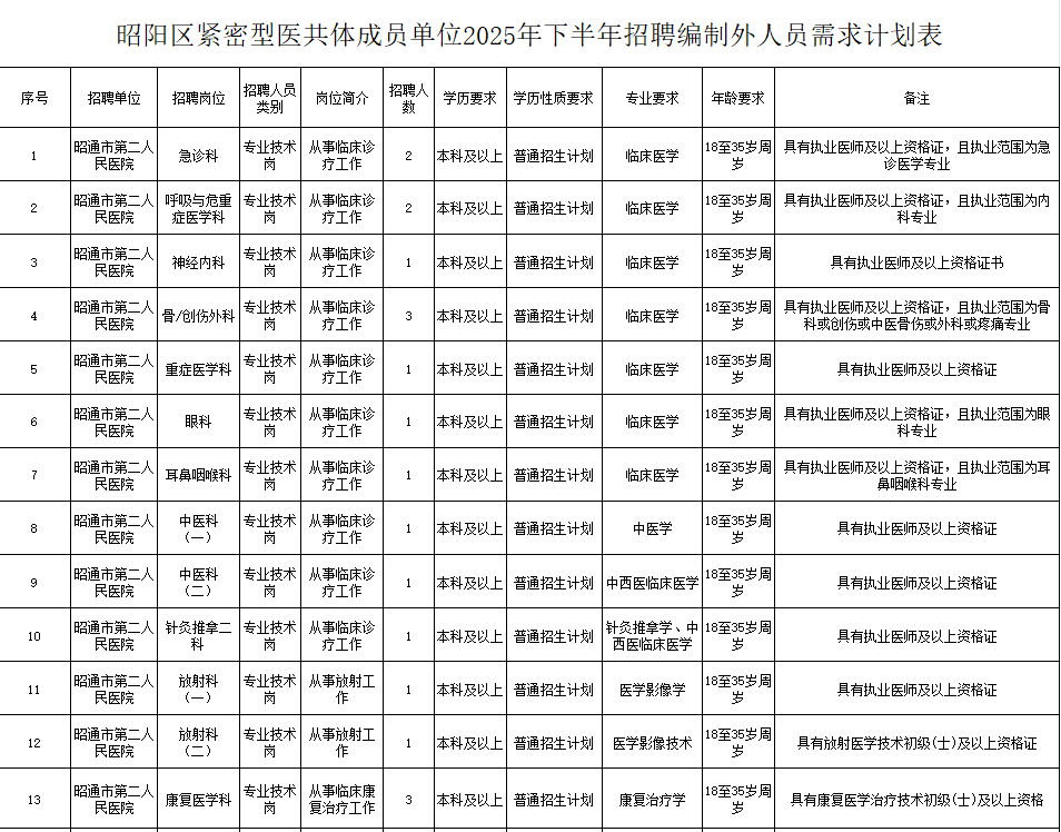 1.云南业图人力资源服务有限公司负责昭阳区紧密型医共体成员单位2025年公开招聘编外人员工作,全程接受社会监督。