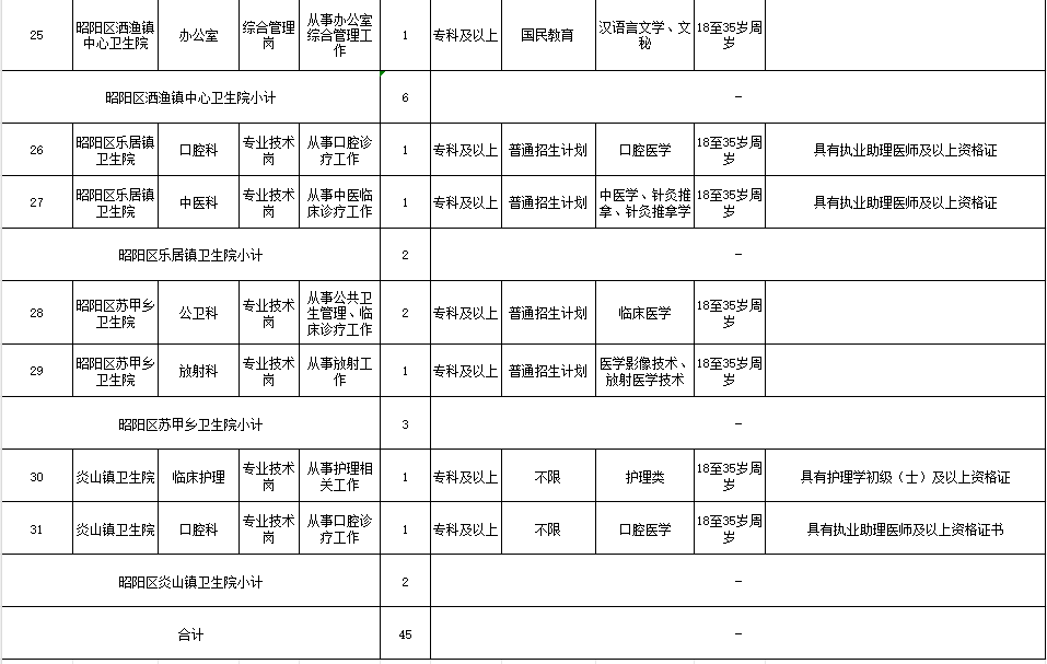 为进一步推动昭阳区紧密型医共体工作,加强医共体成员单位人才队伍建设,满足单位业务发展需要,经研究决定,昭阳区卫健局委托云南业图人力资源服务有限公司面向社会公开招聘编外人员共45名。现将有关事项公告如下: