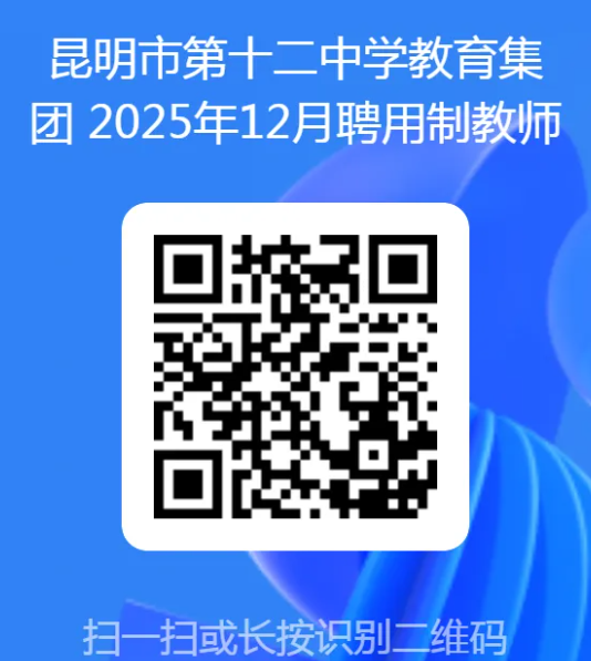 报名方式:登录昆十二中教育集团微信公众平台查看招聘公告,扫描二维码,填写电子报名表单。