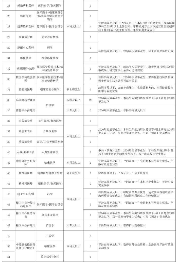 招聘岗位及要求详见《淮北矿工总医院2026年人才需求计划汇总表》,具体以每个批次招聘公告为准。