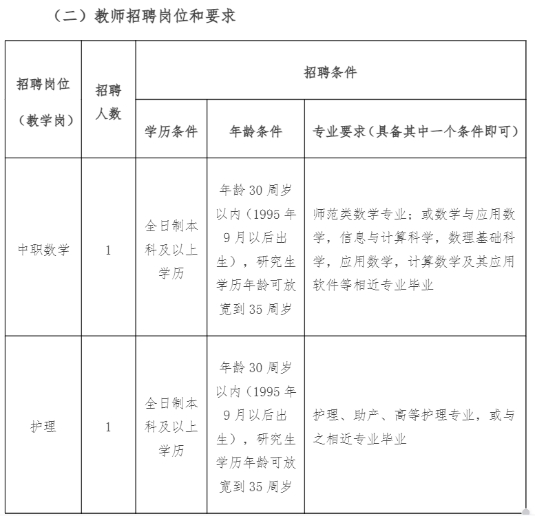 为深入贯彻落实《国家职业教育改革实施方案》(国发〔2019〕4号)以及中共中央、国务院印发的《关于全面深化新时代教师队伍建设改革的意见》(中发〔2018〕4号)等文件精神,积极响应党和政府号召,拓宽大学生就业渠道,结合我校岗位空缺情况与教学工作实际需求,秉持“公开、平等、竞争、择优”的原则,现面向社会公开招聘教师2名。具体事项公告如下: