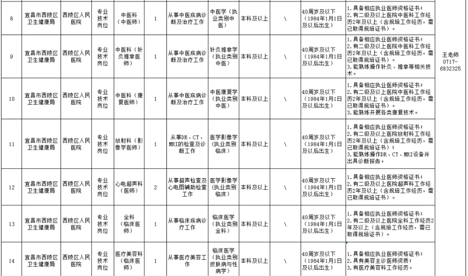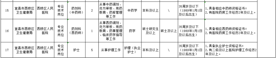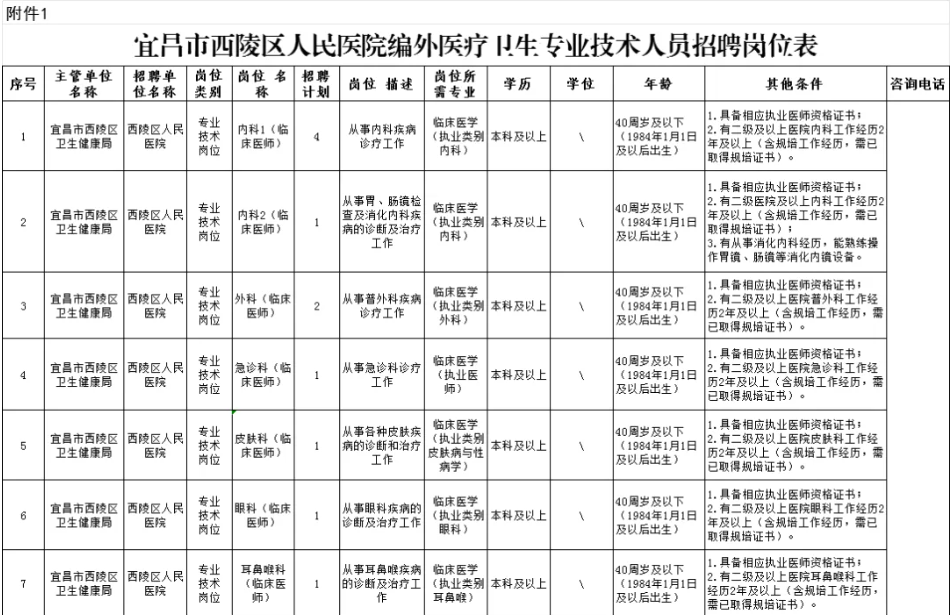 1.宜昌市西陵区人民医院编外医疗卫生专业技术人员招聘岗位表