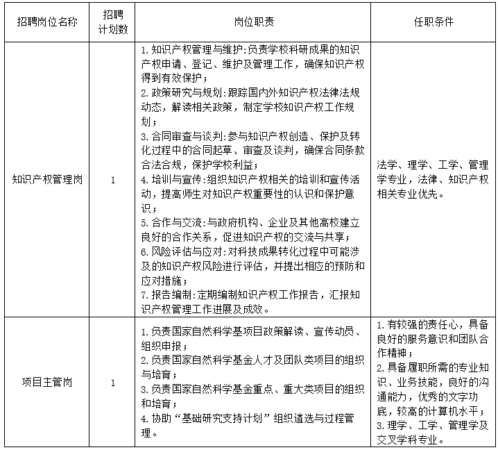 因工作需要,科学技术发展院现面向校内公开招聘职员2名。