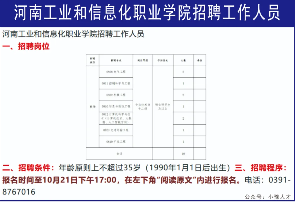 河南一职业学院招聘工作人员10名公告