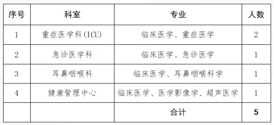面向社会招聘相关专业成熟型人才,普通高等教育五年制本科及以上学历、学位,35周岁以下,取得医师规培合格证书并取得医师及以上资格证书,特别优秀者,可以适当放宽。