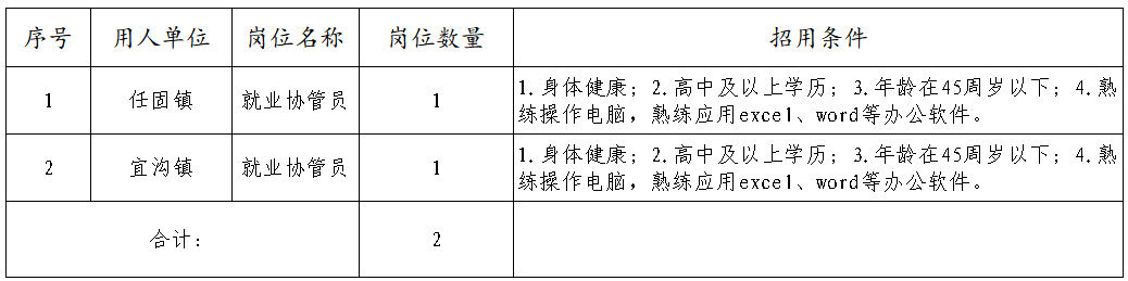 根据《河南省就业促进条例》《安阳市公益性岗位管理实施细则(暂行)的通知》(安人社〔2020〕12号)《汤阴县公益性岗位管理实施细则(暂行)的通知》(汤人社〔2020〕34号)《汤阴县人力资源和社会保障局关于进一步加强基层公共就业服务平台就业协管员管理工作的通知》(汤人社〔2024〕92号)文件精神,为更好地为就业困难群体开展有效就业援助,促进就业困难人员再就业,现向社会公开招聘2名基层公共就业服务平台就业协管员。现将招聘有关事项公告如下: