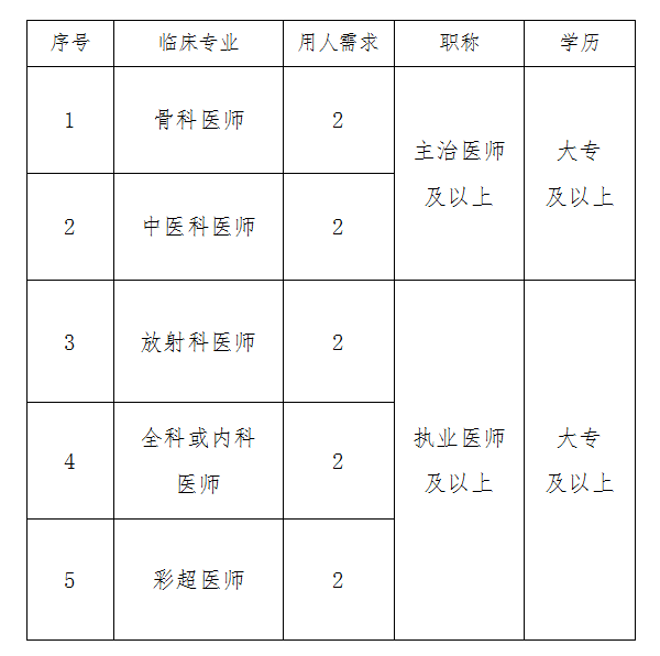 现根据医院业务发展需要,需招聘专业技术人员若干,现将有关事宜公告如下: