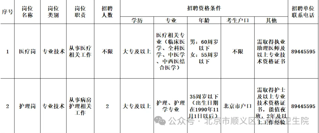 4、面试成绩及体检、考察等公告将在北京市顺义区仁和镇卫生院公众号发布。