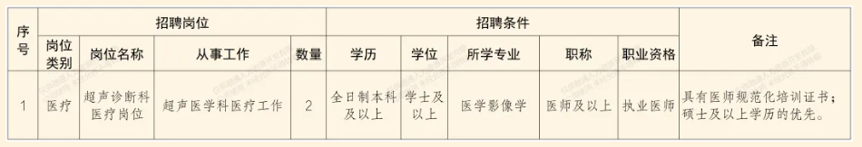 根据实际工作需要,计划面向社会公开招聘超声诊断科医疗岗位2名。