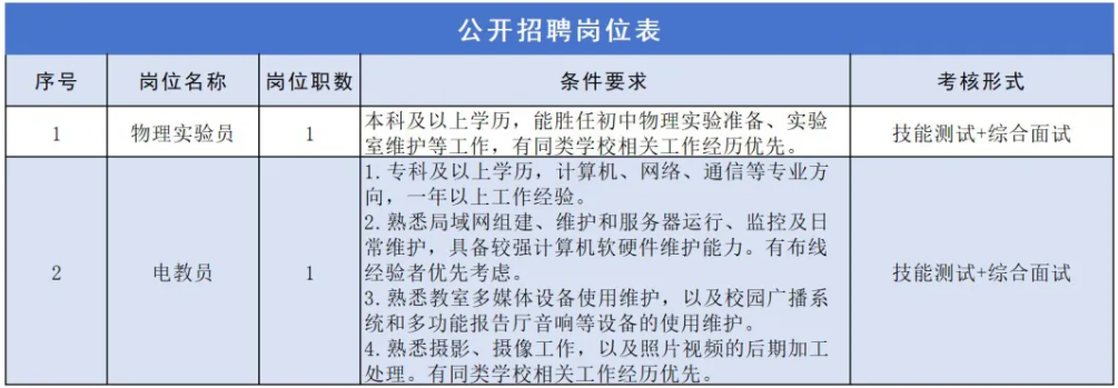 2016年,中雅培粹学校承载雅礼百年荣光进入三湘教育版图,秉承“为学生终身发展与幸福生活奠基”的办学理念,致力于打造“德才兼备、内外兼修”的教师队伍,培养“全面发展,创新拔尖”的新时代人才。2022年学校转制为市直公办学校。2023年,中雅培粹学校南校区顺利开学,正式开启“一校两址、两翼齐飞”办学新格局。9年来,中雅人贯彻党的教育方针、落实立德树人根本任务,坚持内涵式发展、特色化提升之路,办有品质的初中教育,形成了自己的办学特色、育人成就。一大批德才兼备的优秀老师在学校涌现,一大批优秀学生在省市国家级比赛中取得令人瞩目的成绩,拔尖创新人才培养成绩斐然。近三年来,学校培养输送了215位五大学科竞赛省一等奖选手,68位省代表队队员,15人次入选国家集训队,1人荣获国际数学满分金牌,各项数据连续三年均列全省初中学校第一位;为清华大学输送了13位丘成桐领军计划或英才计划选手,入选人数全省初中第一;2025年开创先河,为香港中文大学致真交叉数学院输送了湖南省首位初中学子。学校秉承雅礼教育文化特色,心怀“全省一流,全国知名”的办学追求,打造了长沙市基础教育的一张靓丽名片。现因学校发展需要,面向社会公开招聘编外合同制教职工2名,具体要求及流程如下: