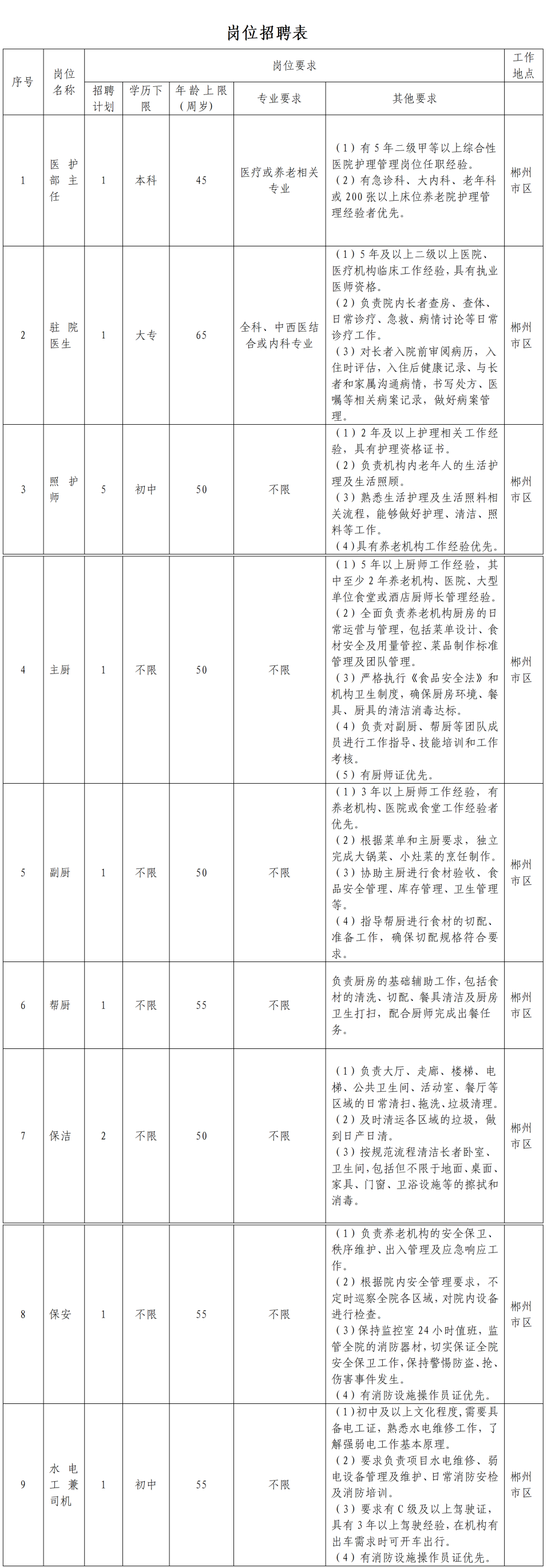 地址:郴州市苏仙区城投大厦1256室(郴州市国控健康养老服务有限公司)