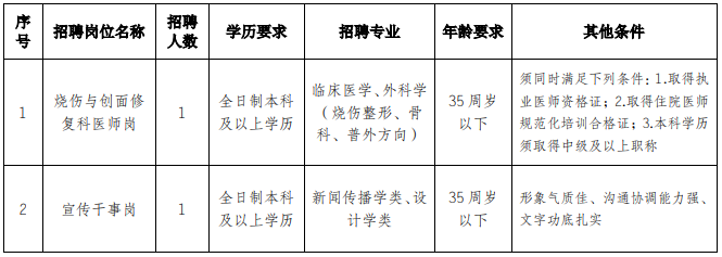 重庆大学附属江津医院医院自聘岗位招聘简章(烧伤与创面修复医师岗等)