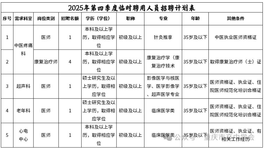 2025年第四季度临时聘用人员招聘计划表
