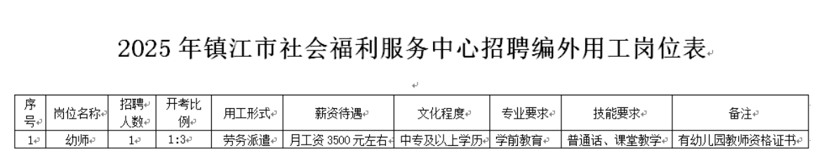 根据《镇江市市级机关事业单位编外用工管理办法》文件精神,结合本单位编外用工空缺和工作需要,市民政局下辖市社会福利服务中心决定招聘编外用工1名。