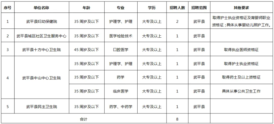 因业务发展需要,武平县总医院拟招聘一批编外人员,具体招聘事项公告如下: