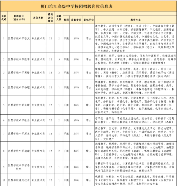 语文2名、数学3名、英语2名、物理1名、化学1名、政治2名、历史1名、地理2名、信息技术1名、通用技术1名。