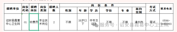 3.聘用资金来源由诏安县霞葛中心卫生院自筹,薪资待遇参照在职编外同岗位人员标准执行。对报考者虽不构成违纪违规,但故意浪费考试资源的不诚信行为,记入考生诚信档案。