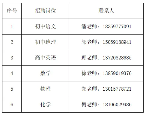 3.学历要求:大学本科及以上学历,持有相应学科教师资格证书,能胜任初中或高中日常教学任务,有相关工作经验者优先。