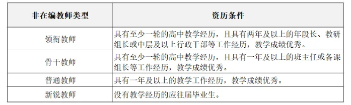 6.招聘的非在编教师类型和资历条件要求: