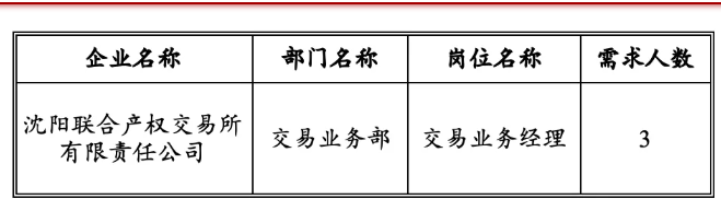 沈阳联合产权交易所有限责任公司招聘岗位信息表