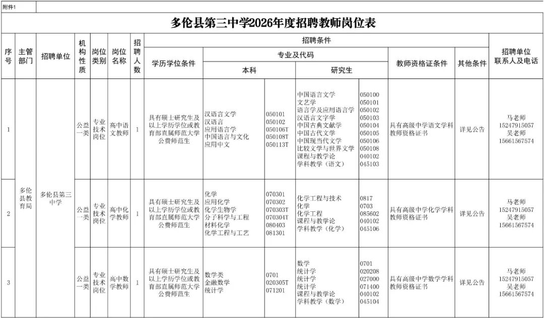根据《内蒙古自治区关于进一步完善中小学教师公开招聘长效机制的指导意见》(内教发〔2021〕14号)、《内蒙古自治区事业单位公开招聘人员办法》(内人社发〔2022〕2号)、《关于启动2026年全区事业单位公开招聘工作的通知》(内人社发〔2025〕21号)等规定,现将多伦县第三中学(自治区示范性高中)2026年度赴内蒙古师范大学招聘教师有关事项公告如下: