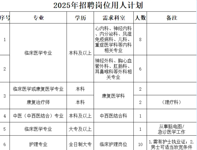 6.年龄要求:本科及以下学历年龄限制在34周岁以下,硕士研究生(含已取得住院医师规范化合格证书本科学历)年龄限制在39周岁以下,特殊人才根据医院需要一事一议(原则上副高级职称人员年龄限制在44周岁以下、正高级职称人员年龄限制在49周岁以下)。