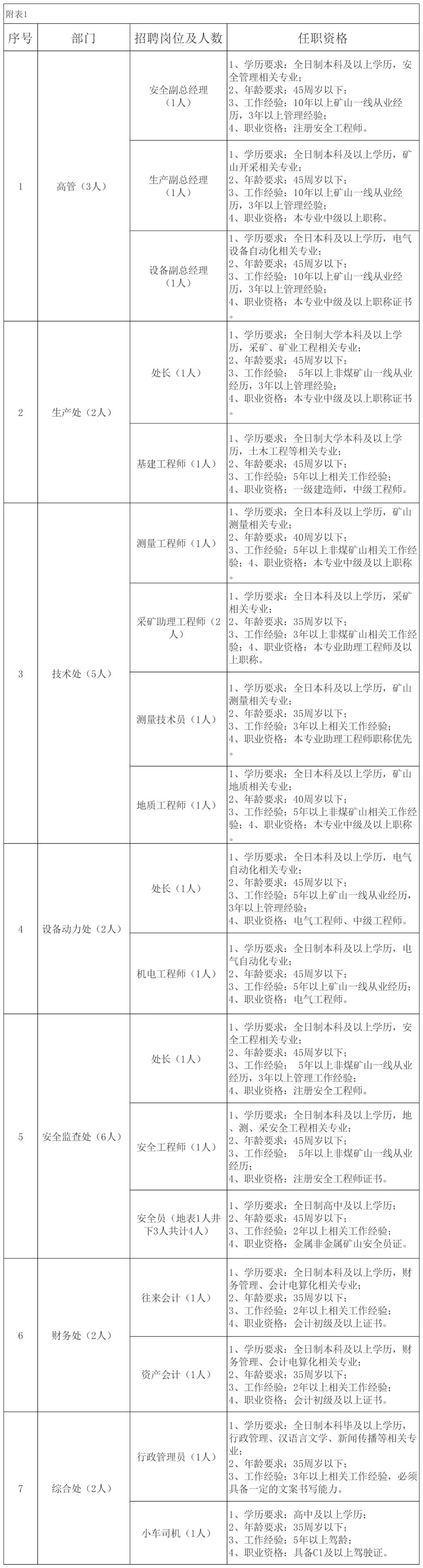公司目前持有一个采矿权和两个探矿权,其他相关手续正在办理中,预计2026年投产建设,未来三年预计投资27.62亿元建成银金属采选规模为297万吨/年大型现代化智能矿山,因公司发展需要,现面向社会公开招聘22人。具体招聘岗位及任职资格如下(附表1):
