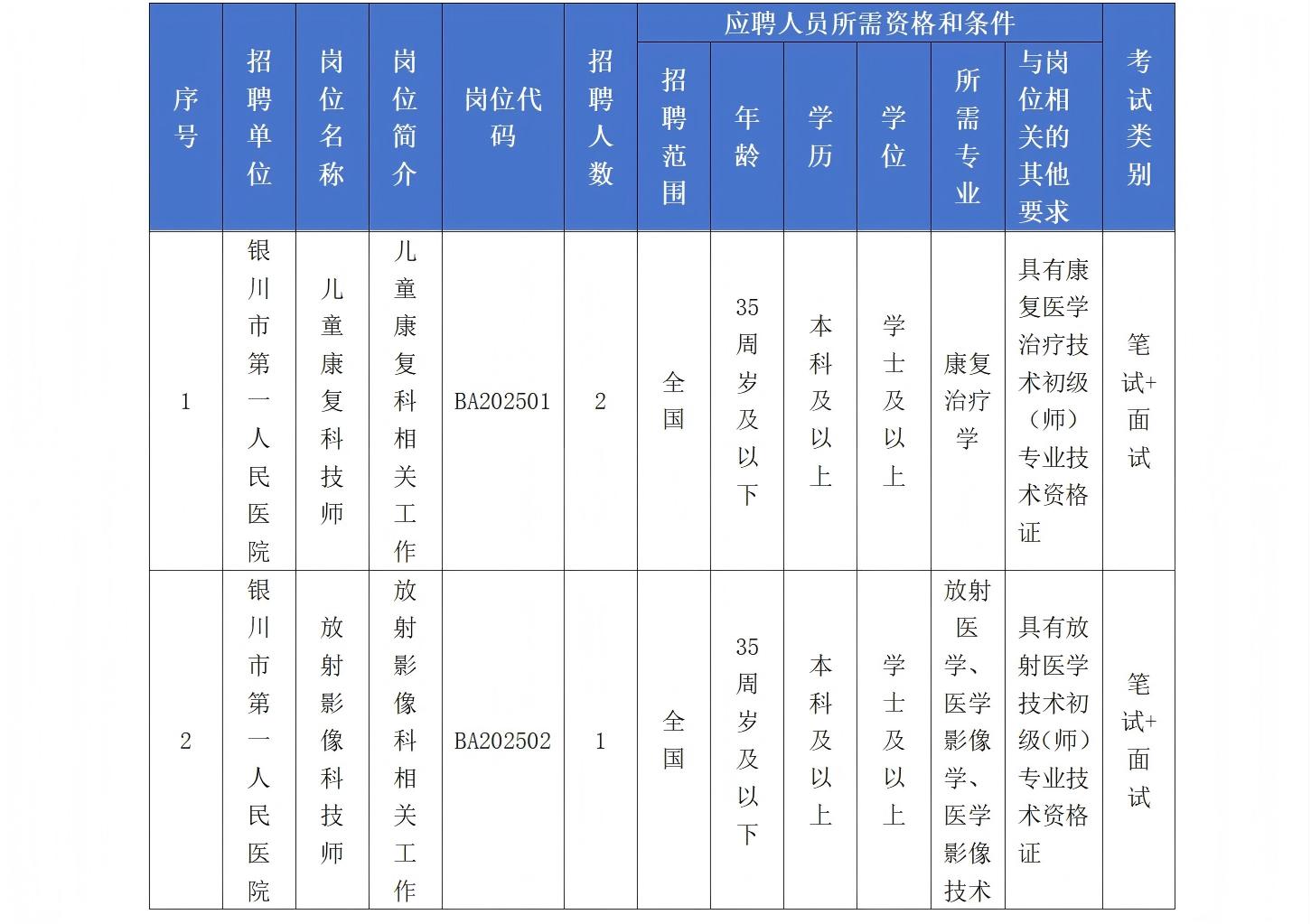 6.符合《银川市第一人民医院2025年自主公开招聘备案制人员岗位计划一览表》中各招聘岗位要求的其他资格条件;
