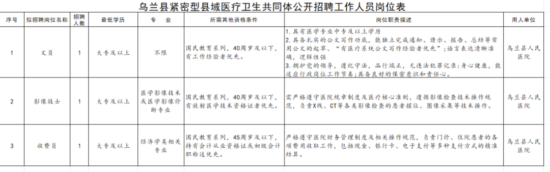 2.本次招录工作由乌兰县紧密型县域医疗卫生共同体管理办公室负责解释。