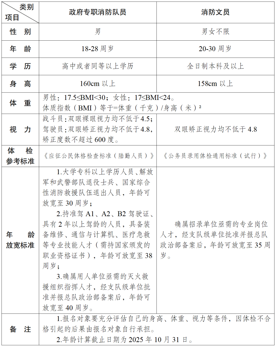 3.热爱消防救援事业,志愿加入政府专职消防队伍;