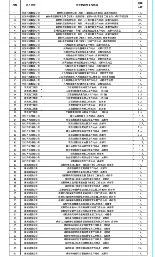 本次招聘岗位详情见文末附件:《成都空港兴城投资集团有限公司下属企业2025年招聘一线岗位职责与任职资格条件》。