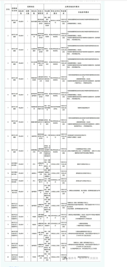 详见附件一:2025年崇州市人民医院医共体单位自主招聘(补充招聘)岗位表