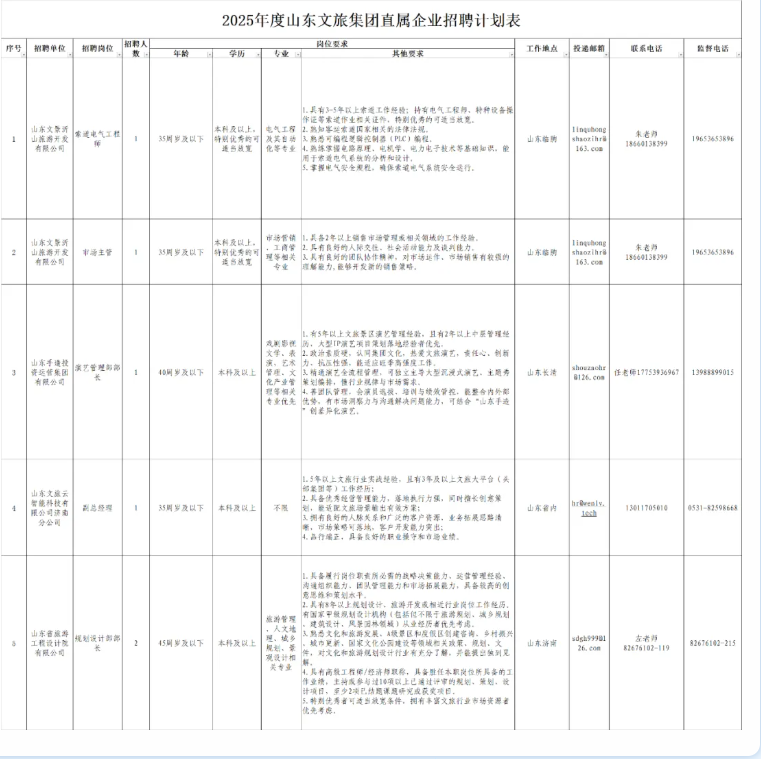 山东文旅集团有限公司招聘6人公告