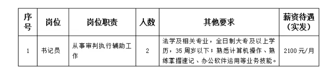 德州经济技术开发区人民法院因工作需要现委托德州德惠劳务派遣有限公司,面向社会公开招聘聘用制人员2名,现将具体事项公告如下: