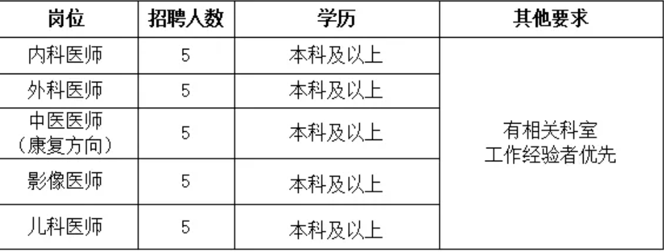 3、其他招聘:长期招聘临床医学专业本科及以上毕业生(有工作经验者学历可以放宽至专科)。