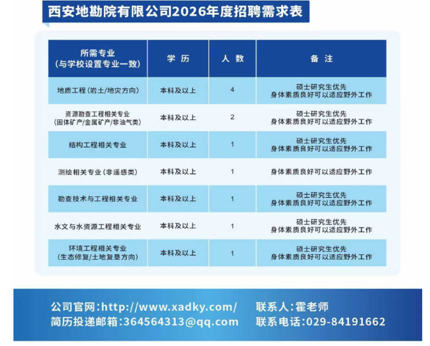 简历投递邮箱:364564313@qq.com联系电话:029-84191662